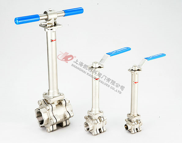 低温球阀分为低温浮动球阀和低温固定球阀两类,对于温度高于-50℃,一般不采用长颈结构,对于温度低于-50℃的球阀,颈部长度T一般为250mm,或根 据我公司的设计和计算确定.低温球阀主要用于输出液态低温介质如乙烯、液氧、液氢、液氮、液氨、液态丙烷、液化天然气、液化石油产品等,不但易燃易爆,而且在升温时要气化,气化 时,体积膨胀数百倍。